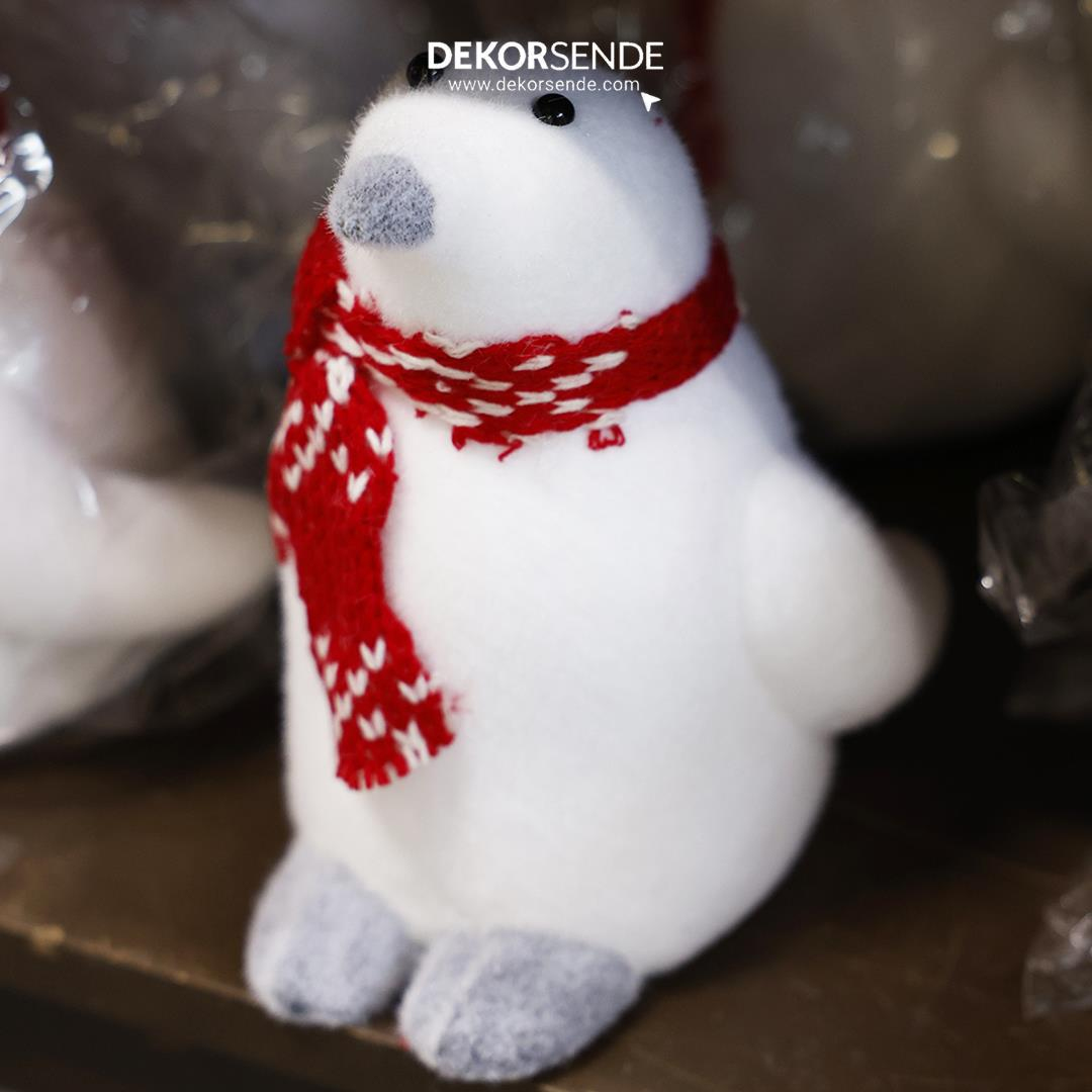 Dekorsende Yılbaşı Temalı Kırmızı Desenli Atkılı Kutup Ayısı Biblo - Neşeli Yeni Yıl Dekorasyonu