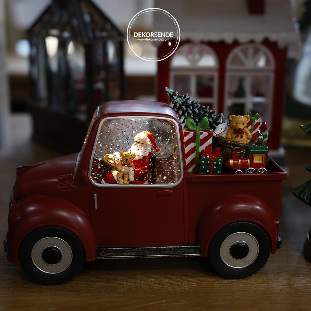 Ürünün merkezinde, parlak kırmızı renkte eski model bir kamyonet yer alır. Bu kamyonetin kasası, özenle yerleştirilmiş hediye paketleri ve küçük yılbaşı ağaçlarıyla doludur. Kamyonetin iç kısmındaki kar küresinin içinde ise, elinde oyuncak bir ayıcık tutan sevimli bir Noel Baba figürü bulunur.