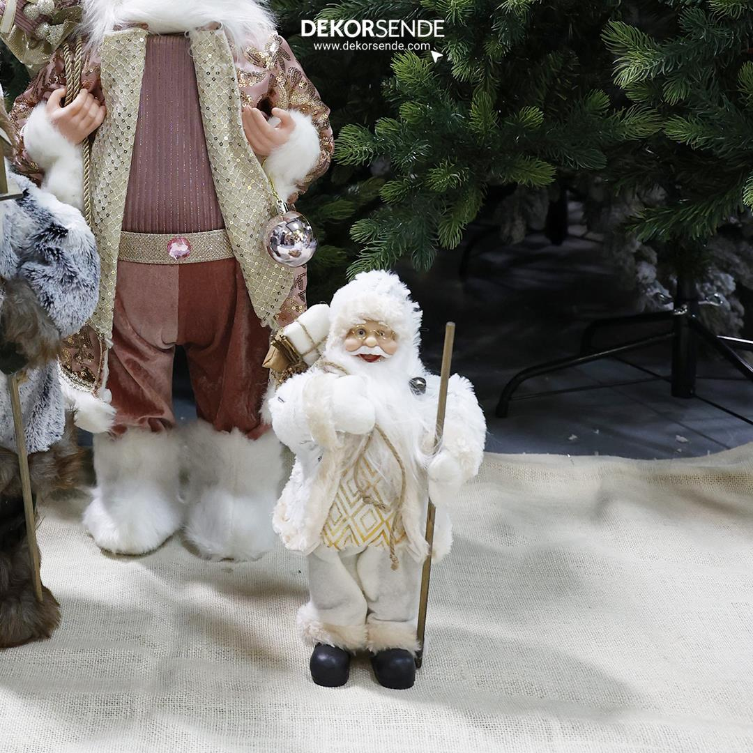 Yılbaşı Dekoratif Noel Baba Biblosu Değnekli ve Çuvallı 30 cm Beyaz
