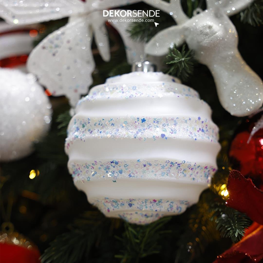 Ürün Adı: Yılbaşı Top Süsü Candy Desenli Beyaz 15 cm