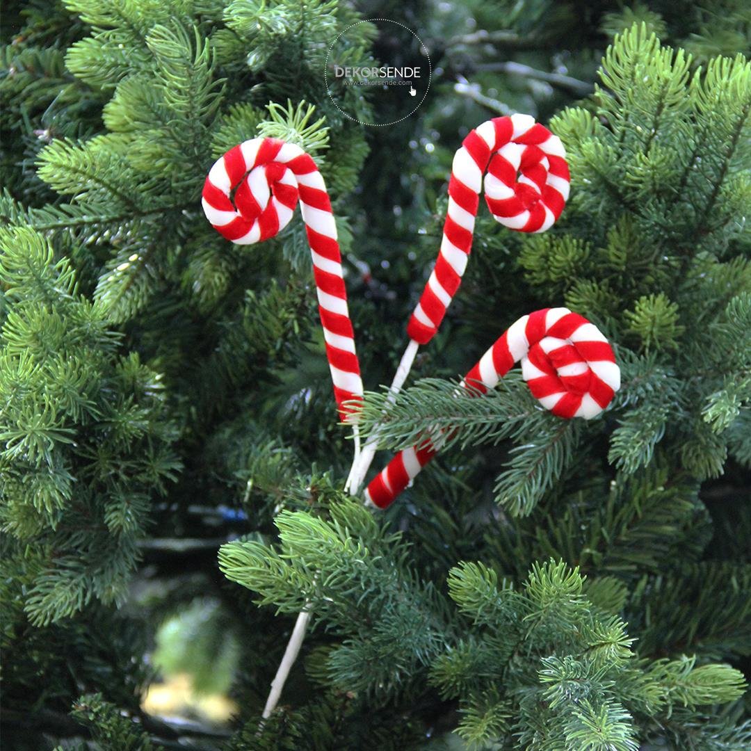 Yılbaşı Dekoratif Süs Pike Spiral Şeker Kamışı Temalı 40 cm Kırmızı Beyaz