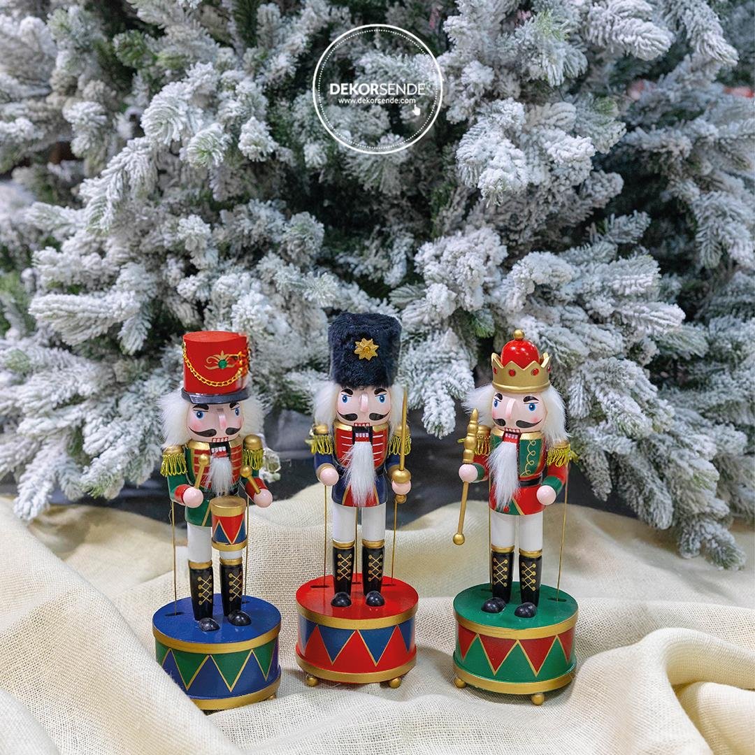 Biblonun dikkat çekici kırmızı-yeşil üniforması, altın rengi işlemeleri ve tacı ile detaylı bir işçiliğe sahiptir. Elindeki zarif baston ve gür beyaz sakalı, bibloya masalsı bir karakter kazandırır. Altında yer alan davul figürlü standı ise ürüne sağlam bir duruş ve estetik bir bütünlük sağlar.