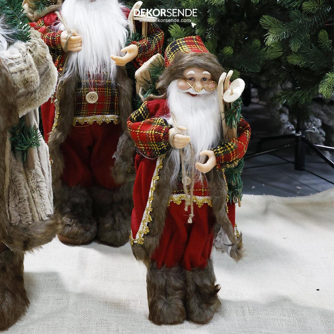 Ürün Adı: Ekose Şapkalı Yünlü Noel Baba Yılbaşı Biblo Süsü - Kırmızı 45cm