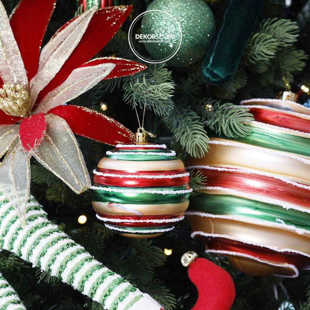 Yılbaşı ağacınızı süslerken klasik ve şık bir dokunuş arayanlar için Dekorsende'nin özel tasarım 2'li yılbaşı top süsü ideal bir seçim. Geleneksel yılbaşı renkleri olan kırmızı ve yeşilin modern çizgilerle buluştuğu bu set, ağacınıza zarif bir canlılık katacak.