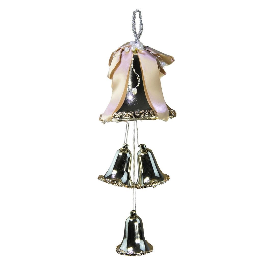 Yılbaşı Temalı Şampanya Rengi İncili Çoklu Çanlı Süs 30 cm