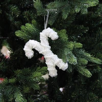 Yılbaşı Temalı Beyaz İncili Simli Baston İkili Süs 15 cm