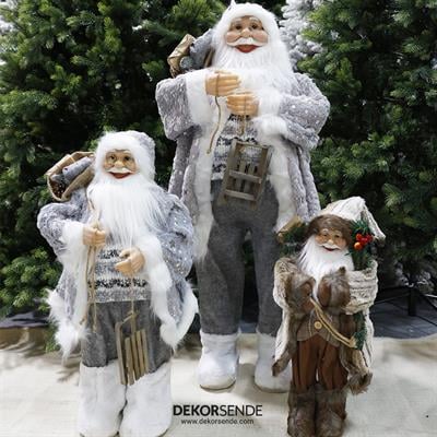 Ürün Adı: Işıltılı Yıldızlı Noel Baba Yılbaşı Biblo Süsü - Gri 90cm