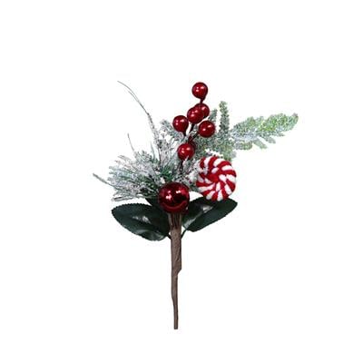 Yılbaşı Temalı Kar Efektli Kırmızı Berry ve Şekerlemeli Pike Kırmızı & Yeşil 22 cm