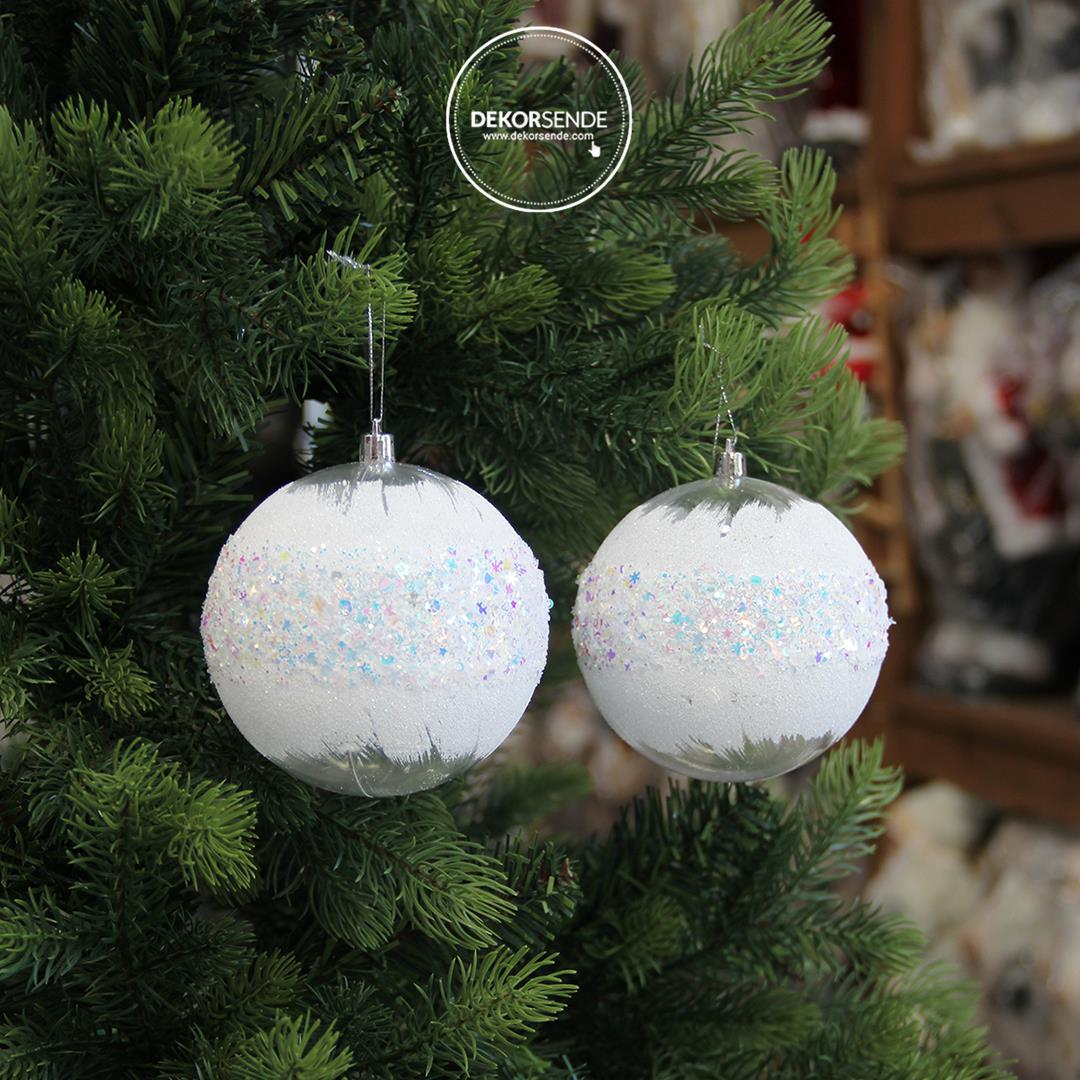 Dekorsende Kar Efektli Pırıltılı Beyaz Yılbaşı Ağaç Topu (Renk: Beyaz, Ölçü: 10 cm)