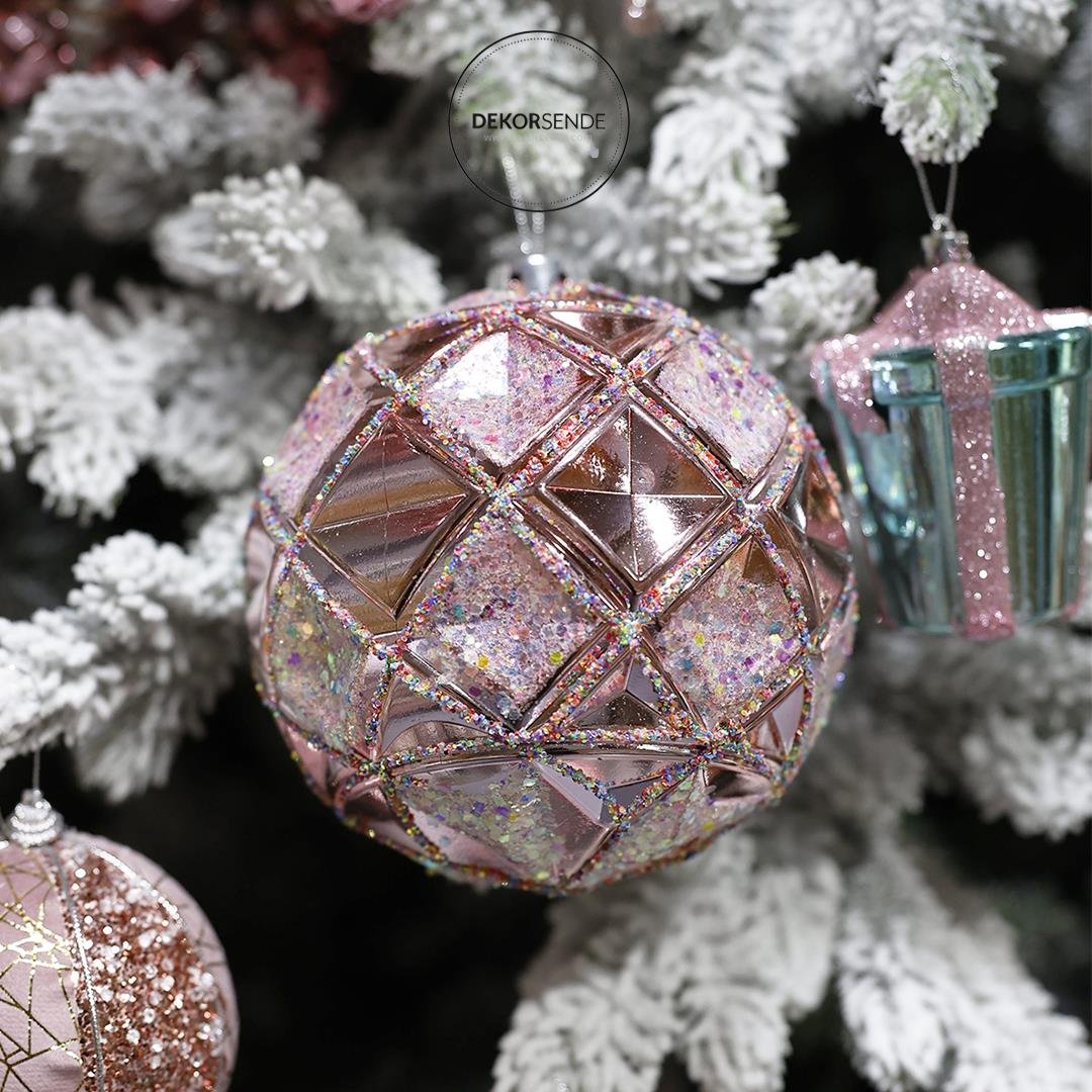 Çok Yönlü Dekorasyon: Tek başına veya diğer pembe, beyaz ve gümüş tonlarındaki süslerle kombinlenerek zarif bir yılbaşı teması oluşturmak için idealdir.