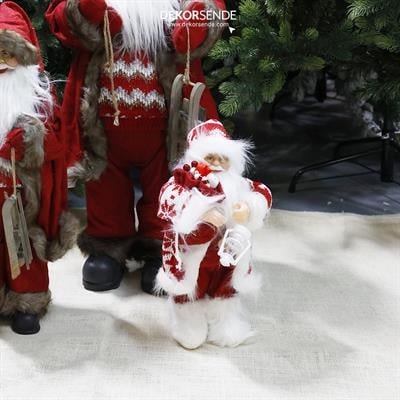 Yılbaşı ruhunu evinize taşıyacak bu 30 cm boyundaki klasik kırmızı kıyafetli Noel Baba figürü, detaylı işçiliği ve zarif aksesuarlarıyla dikkat çeker. Elinde fener tutan, hediye çuvalı taşıyan bu şık dekor ürünü; salon, vitrin, ofis ve mağaza vitrinleri için mükemmel bir süs alternatifidir.