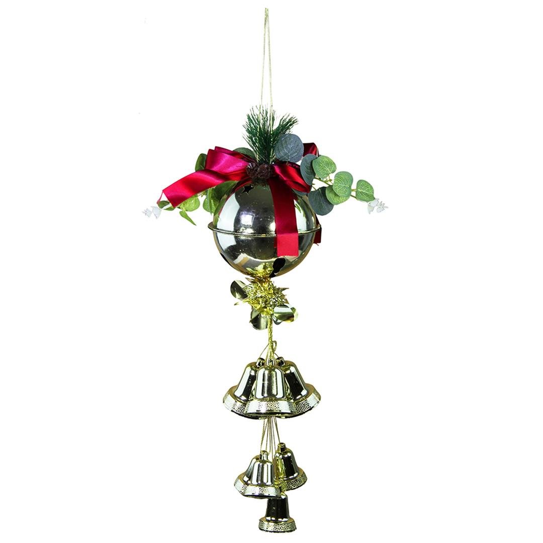 Yılbaşı Bordo Kurdeleli Altın Çanlı Çıngırak Süs 40 cm