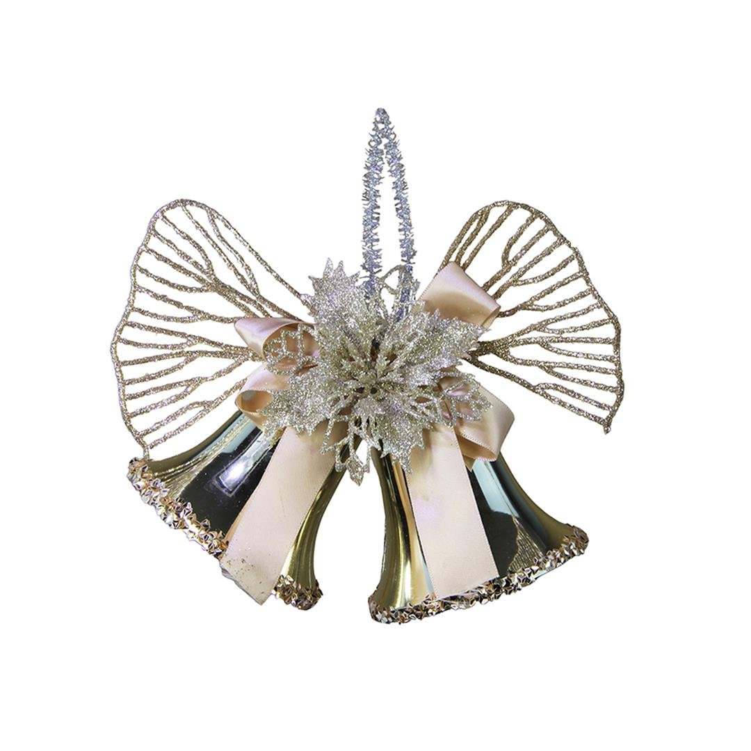 Yılbaşı Temalı Şampanya Rengi Manolyalı Çiftli Çan Süs 20 cm