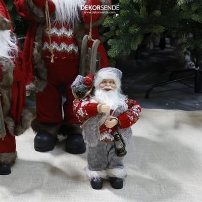 Yılbaşı ruhunu evinize taşıyacak bu 30 cm boyundaki klasik gri - kırmızı kıyafetli Noel Baba figürü, detaylı işçiliği ve zarif aksesuarlarıyla dikkat çeker. Elinde fener tutan, sırtında hediye çuvalı taşıyan bu şık dekor ürünü; salon, vitrin, ofis ve mağaza vitrinleri için mükemmel bir süs alternatifidir.
