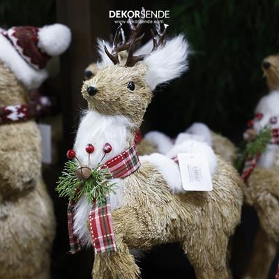 Orta Boy Kırmızı Ekose Atkılı Yılbaşı Geyik Biblo 45 cm