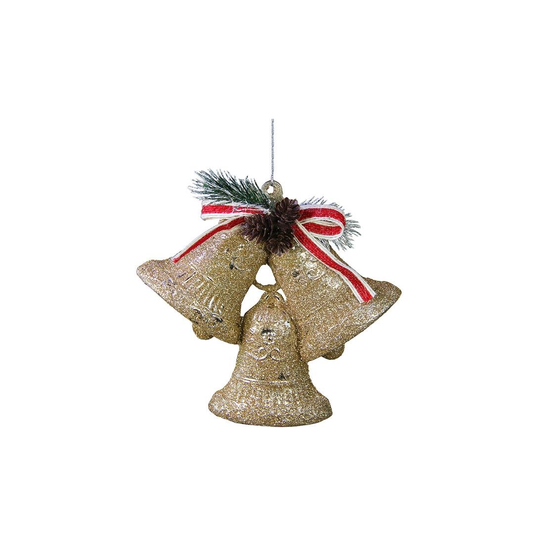 Yılbaşı Temalı Şampanya Renk Simli Üçlü Çan Süs 12 cm