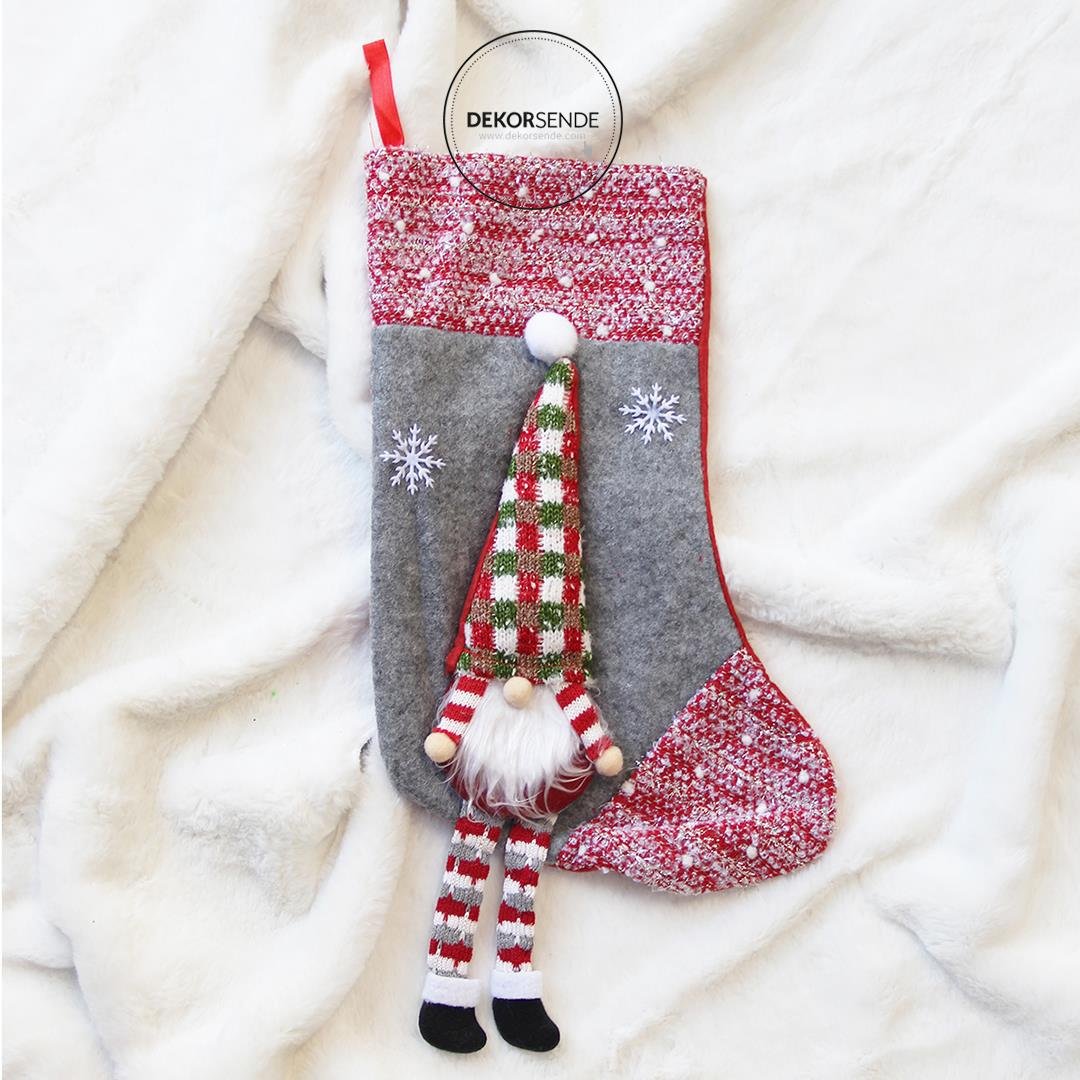 Gri renkli ana gövdesinde işlenmiş kar tanesi desenleri ve kırmızı-beyaz detayları ile kış mevsiminin tüm büyüsünü yansıtır. Çorabın dışına asılı duran uzun bacaklı, ekose şapkalı sevimli Noel Baba (cüce) figürü, ürüne eğlenceli ve hareketli bir hava katmaktadır. 60 cm'lik geniş boyutu sayesinde, sevdiklerinizin hediyelerini veya yılbaşı sürprizlerini içine koymak için idealdir.
