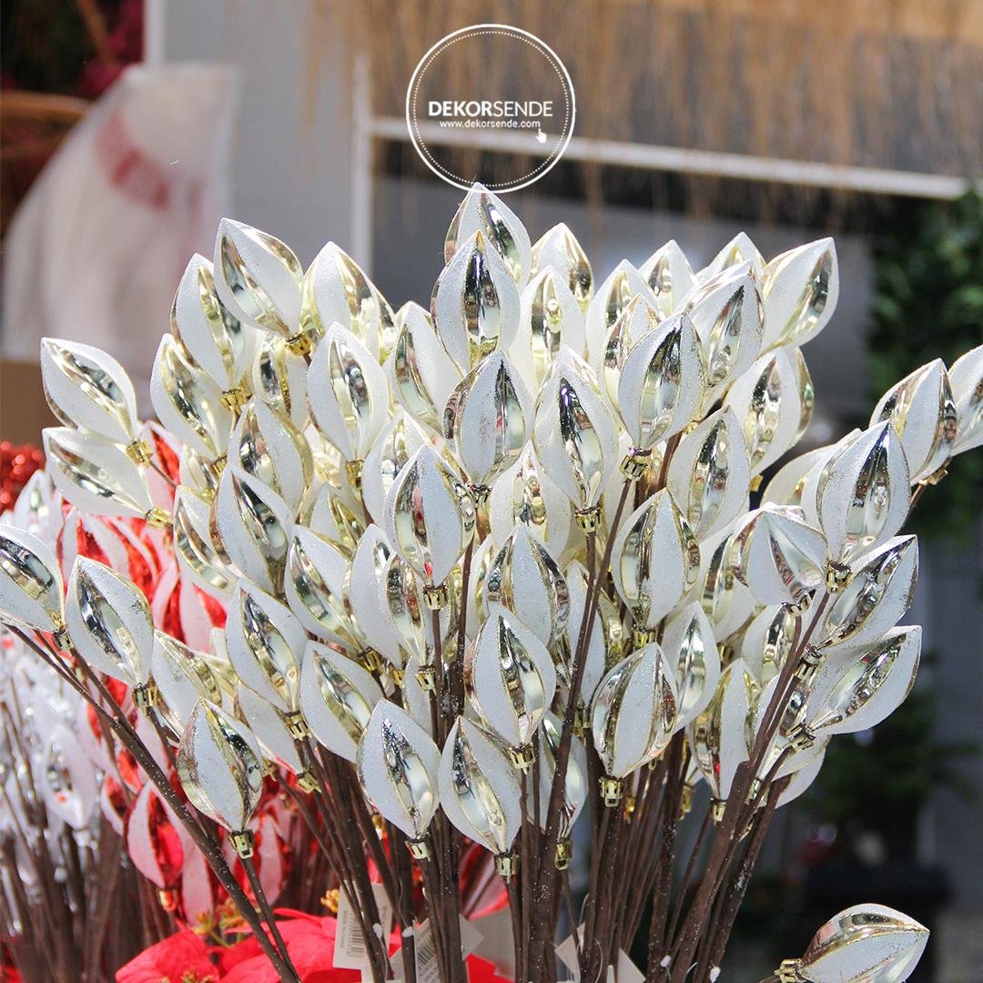 Yapay Altın Beyaz Simli Kozalaklı Dekoratif Dal 90 cm