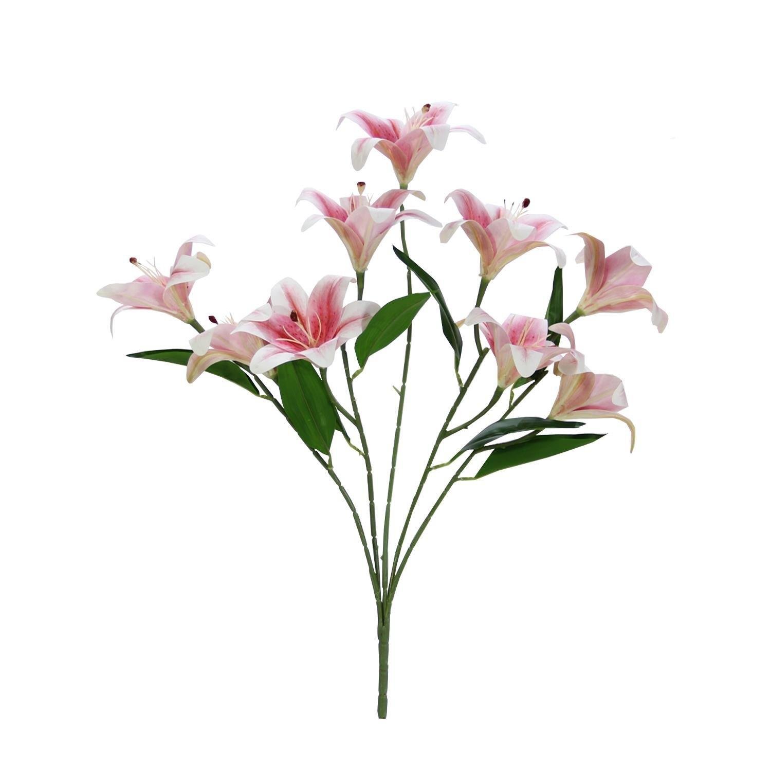 Yapay Lilyum Demeti 55 cm ürünümüz yapay çiçektir. Demet 5 adet daldan oluşmaktadır. Dalların üzerinde 9 adet lilyum kellesi ve 8 adet yaprak bulunmaktadır. Ürünün uzunluğu 55 cm, ortalama genişliği 40 cm, sap uzunluğu 8 cm'dir. Demetin dallarını elinizle şekillendirerek daha geniş veya daha dolgun görünmesini sağlayabilirsiniz. Birçok yapay çiçek çeşidini Dekorsende'de bulabilirsiniz.