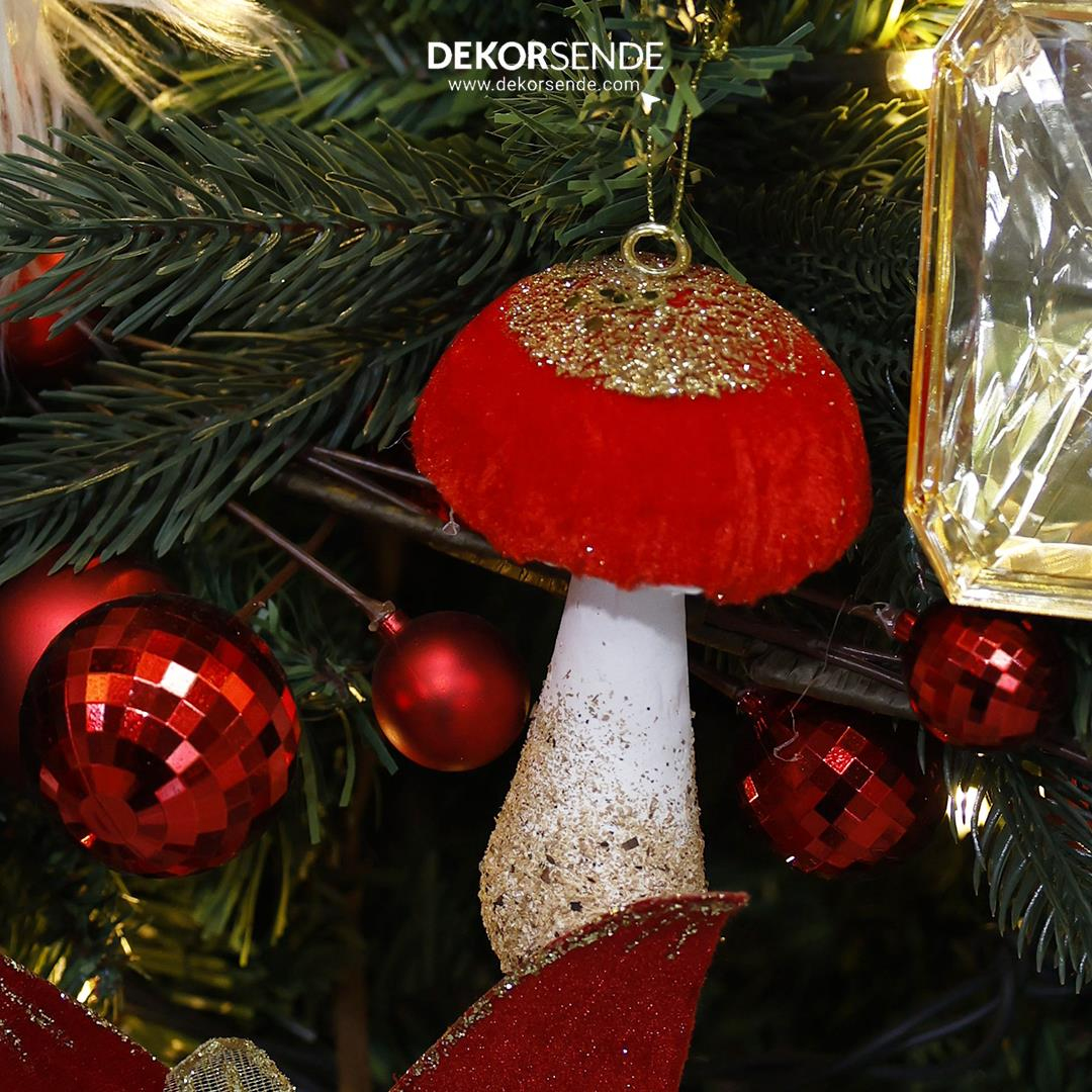 Kadife Kırmızı Simli Mantar Yılbaşı Ağacı Süsü 14 cm