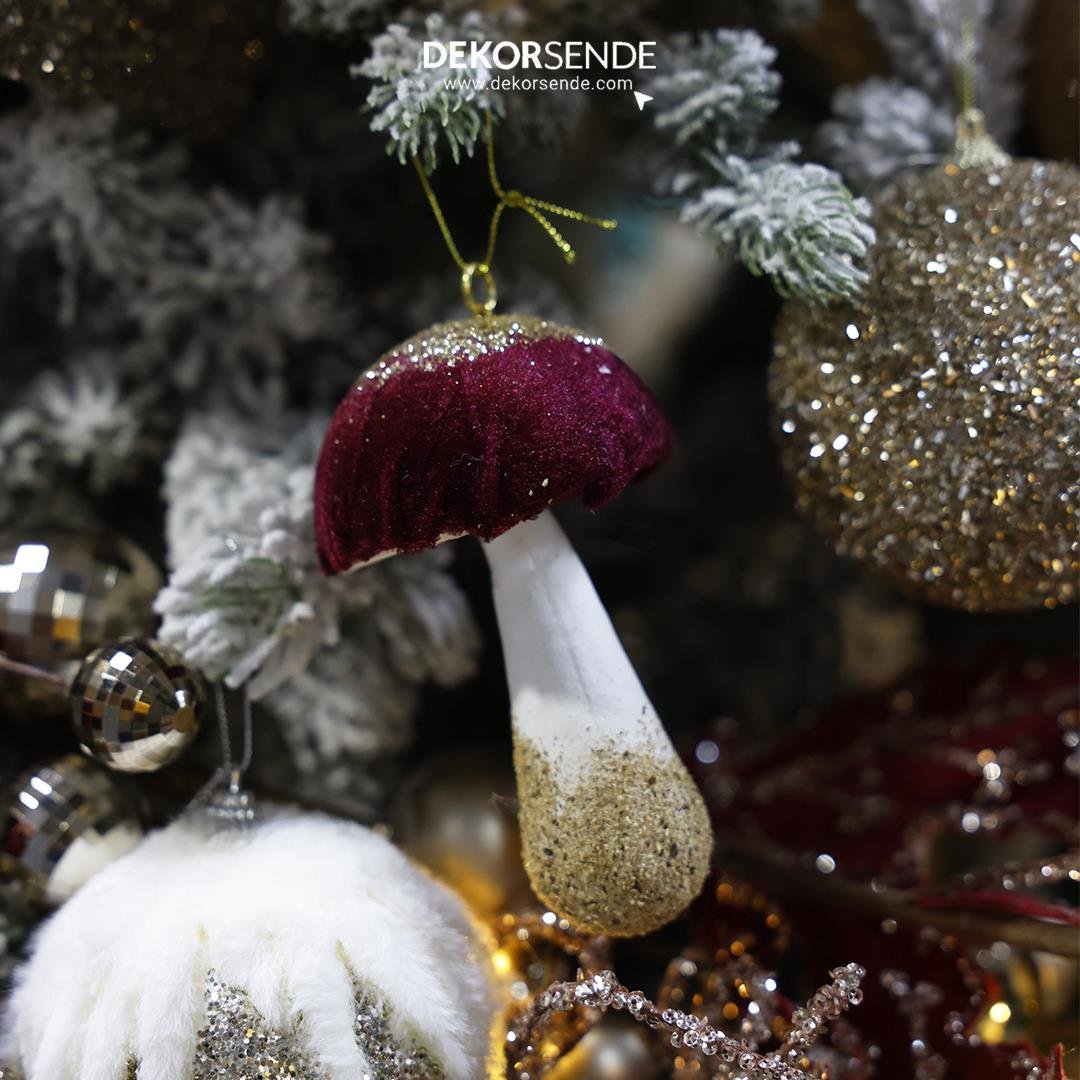 Kadife Bordo Simli Mantar Yılbaşı Ağacı Süsü 14 cm