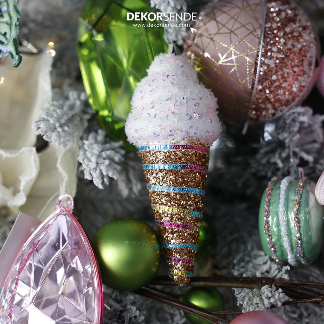Dekorsende Yılbaşı Çam Ağacı Süsü Pullu Dondurma Çok Renkli 17 cm