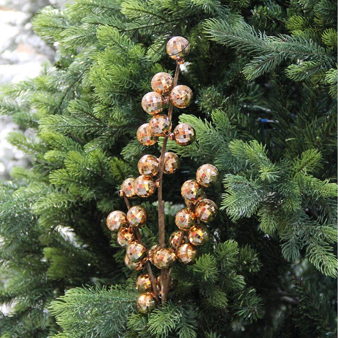 70 cm uzunluğundaki bu süsleme dalı, esnek yapısı sayesinde dilediğiniz gibi şekil alabilir. Üzerindeki şampanya rengi disko topları, ışığı yansıtarak göz alıcı bir atmosfer yaratır ve bulundukları ortamı adeta büyüler. Yılbaşı ağacınızı süslemek için ideal olduğu gibi, uzun bir vazoda tek başına kullanılarak minimalist ve şık bir odak noktası oluşturabilir.