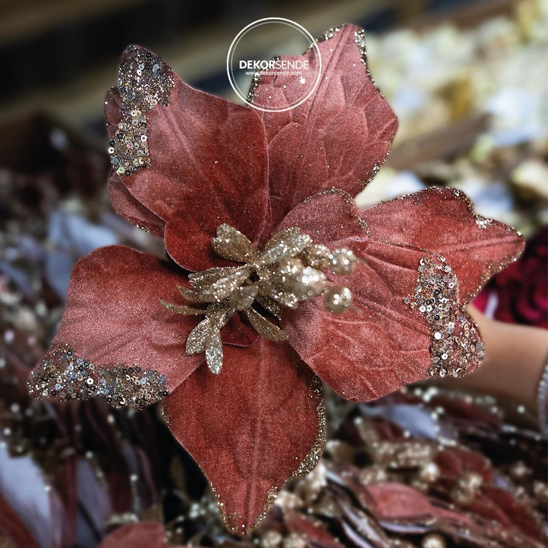 Yüksek kaliteli malzemeden üretilen bu dekoratif çiçek, uzun ömürlüdür ve her yıl yeniden kullanılabilir. Bakım gerektirmez, solmaz ve dökülmez; böylece yılbaşı sezonunda pratik ve şık bir dekorasyon çözümü sunar.