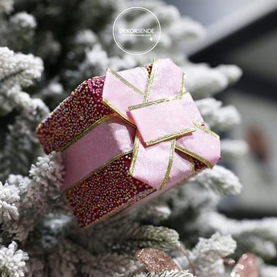 Yılbaşı Hediye Paketi Pembe Simli Çubuklu Dekor 12 cm