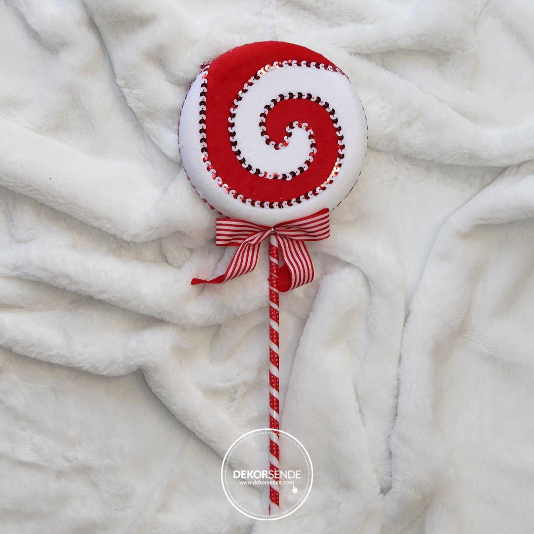 Dekorsende Yılbaşı Lolipop Süsü Dikişli Kırmızı Beyaz 40 cm