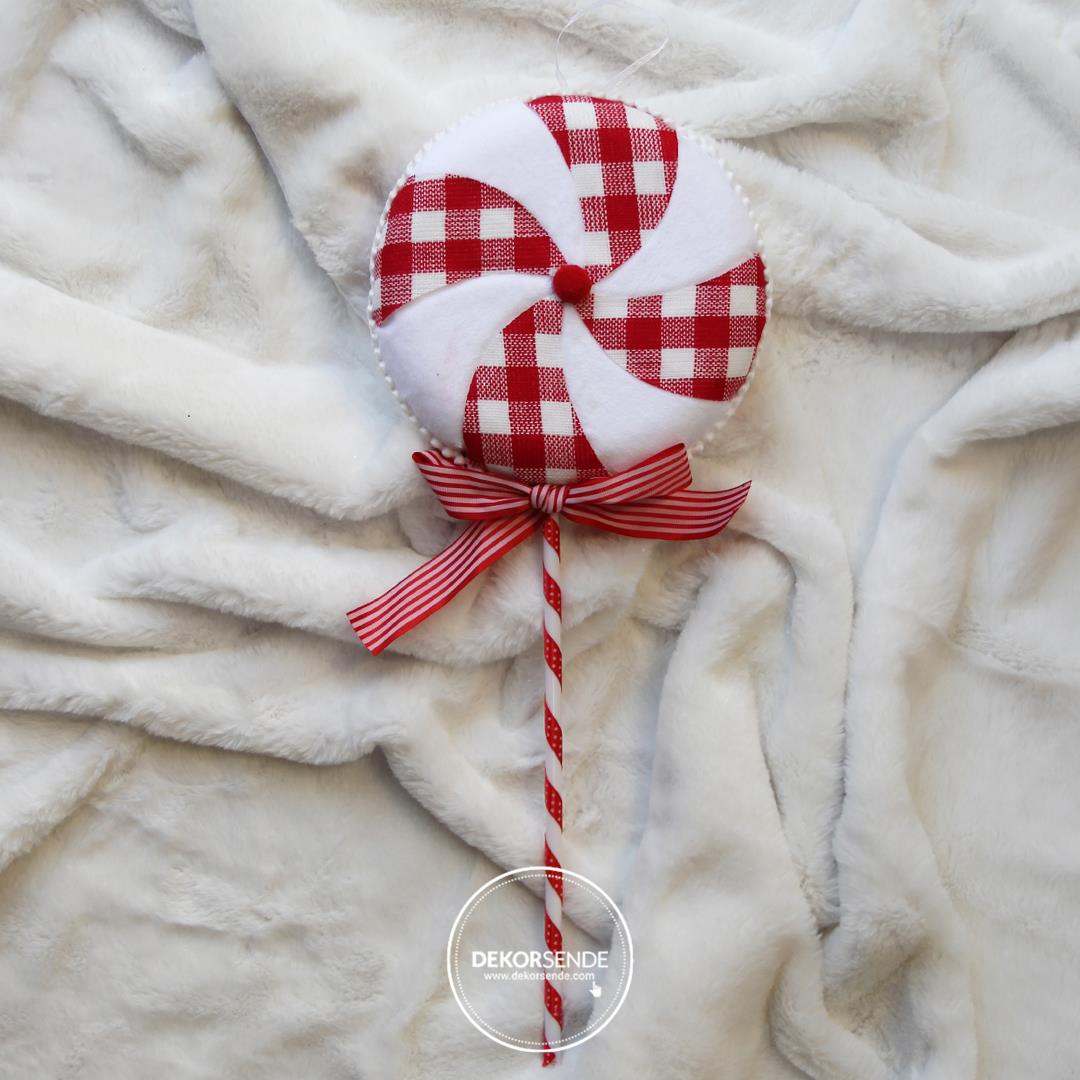 Dekorsende Yılbaşı Lolipop Süsü Ekoseli Kırmızı Beyaz 50 cm