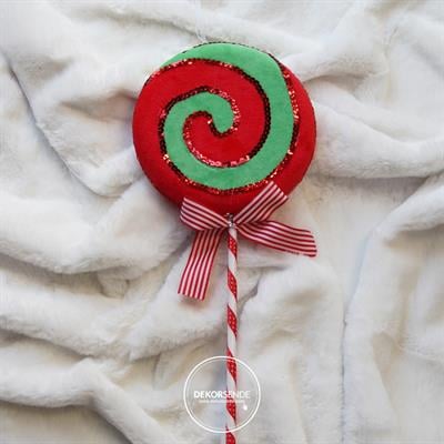 Dekorsende Yılbaşı Lolipop Süsü Pul İşlemeli Kırmızı Yeşil 40 cm