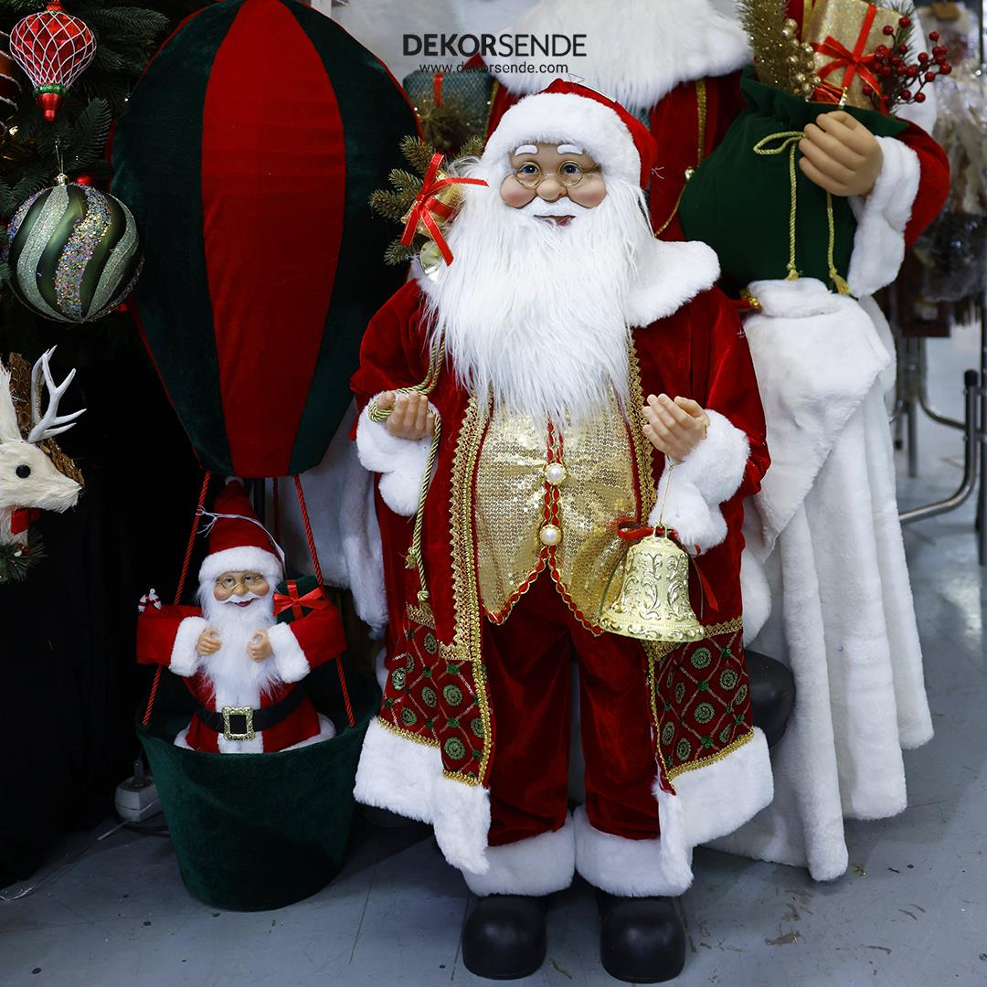 DekorSende markasının bu görkemli 90 cm Kırmızı Altın Lüks Noel Baba Figürü ile yılbaşı dekorasyonunuzun merkezine ihtişamlı bir dokunuş katın. Büyük boyutu, detaylı işçiliği ve zengin kostümü sayesinde bu figür, yılbaşı atmosferini evinize veya iş yerinize taşır.