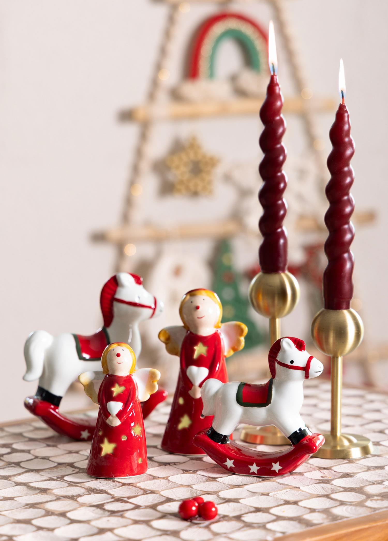 Dekorsende Yılbaşı Sallanan At Figürü Porselen Kırmızı Beyaz 11x10x4 cm