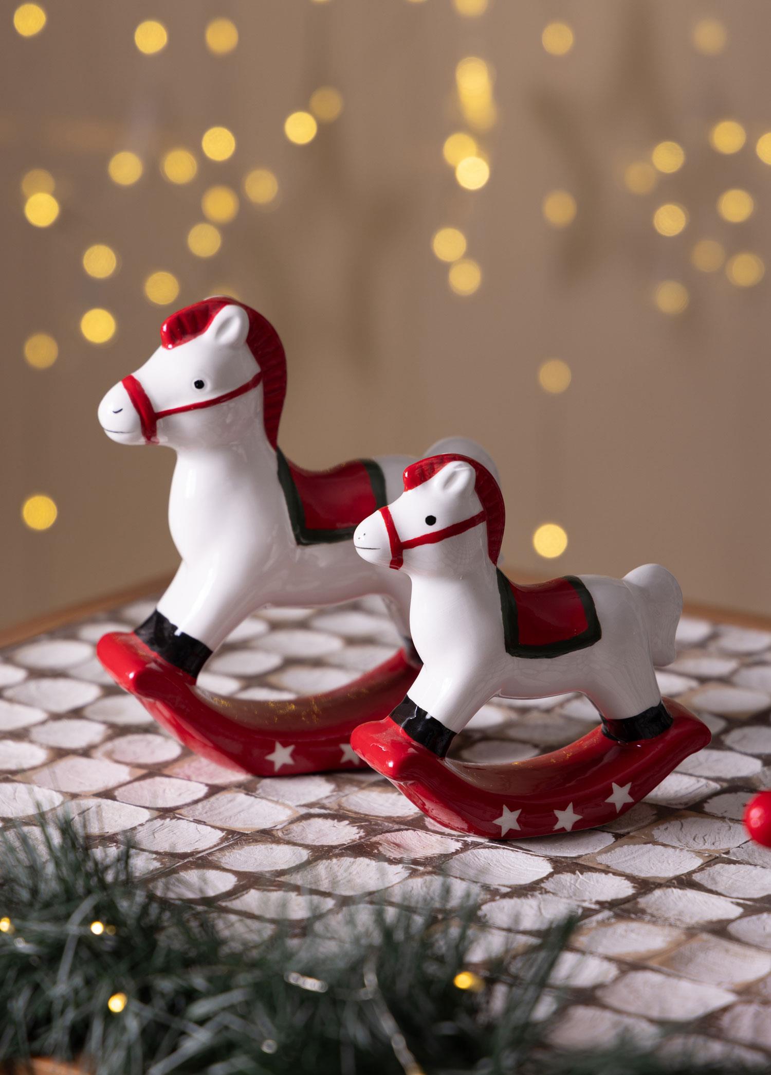 Dekorsende Yılbaşı Sallanan At Figürü Porselen Kırmızı Beyaz 15x13x4 cm