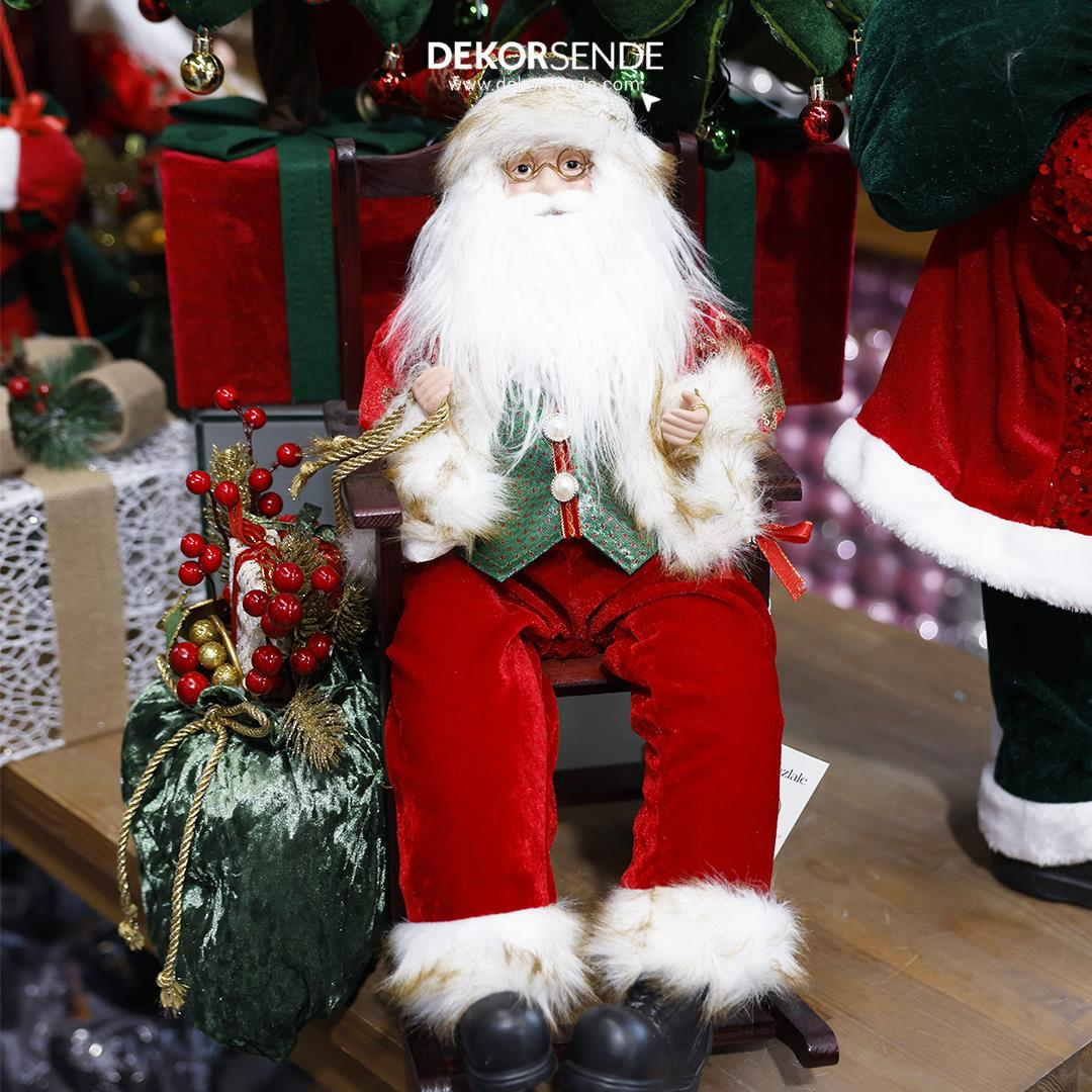 50x35 cm Oturan Noel Baba Figürü - Sandalyeli Büyük Boy Yılbaşı Biblosu
