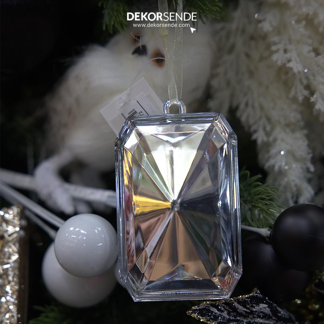 Yılbaşı ağacınıza modern, sofistike ve ışıltılı bir dokunuş katın! Dekorsende markalı bu 13 cm'lik dikdörtgen asma süsü, asil gri rengi ve yüzeyindeki parlak taş detaylarıyla göz kamaştırır. Işığın yansımasıyla adeta bir mücevher gibi parlayan bu süs, modern yılbaşı dekorasyonunuzu tamamlayacaktır. Kaliteli ve gösterişli bir parçadır.