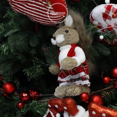 Yılbaşı Temalı Dekoratif Ekoseli Elbiseli Kız Sincap Biblo - 30 cm