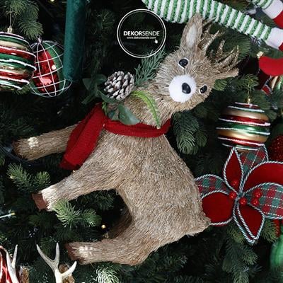 Yılbaşı Temalı Kırmızı Atkılı Gold Boynuzlu Geyik Biblo 42 cm