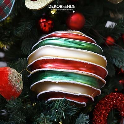Ürün Adı: Yılbaşı Top Süsü Dalgalı Altın Kırmızı Yeşil 20 cm