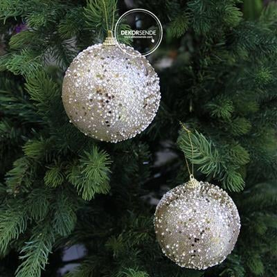 Dekorsende Yılbaşı Top Süsü Parıltılı Beyaz Altın 2'li 10 cm