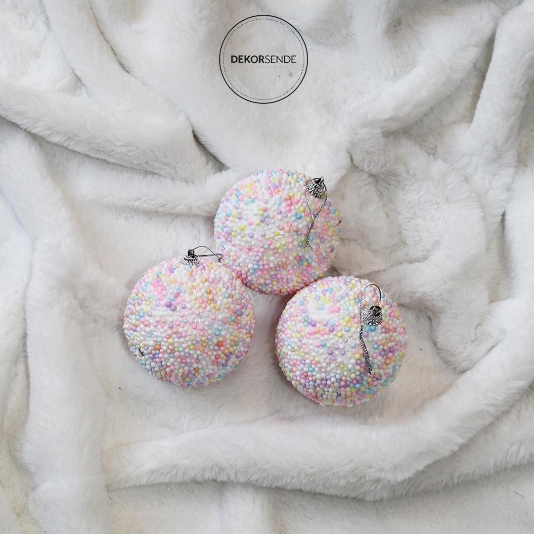 Yılbaşı dekorasyonunuza tatlı ve neşeli bir hava katmak için Dekorsende'nin 3'lü renkli şekerleme top süslerini tercih edin! Minik boncuklarla bezenmiş bu özel tasarım toplar, şekerlemeleri andıran sevimli görünümleriyle çam ağacınıza ve evinize enerji dolu bir ışıltı katacak.