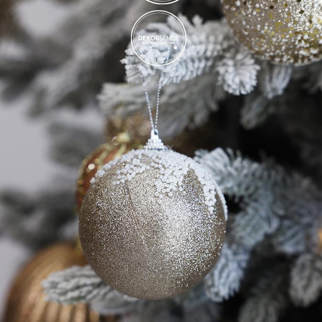 2'li Karlı Şampanya Parıltılı Yılbaşı Topu - 10 cm